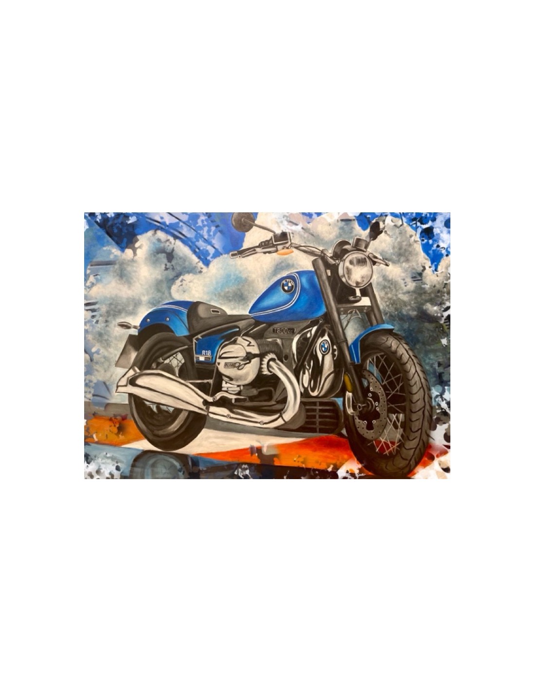 La potencia y estilo de la BMW R18, plasmada con detalles realistas y un cielo imponente.
